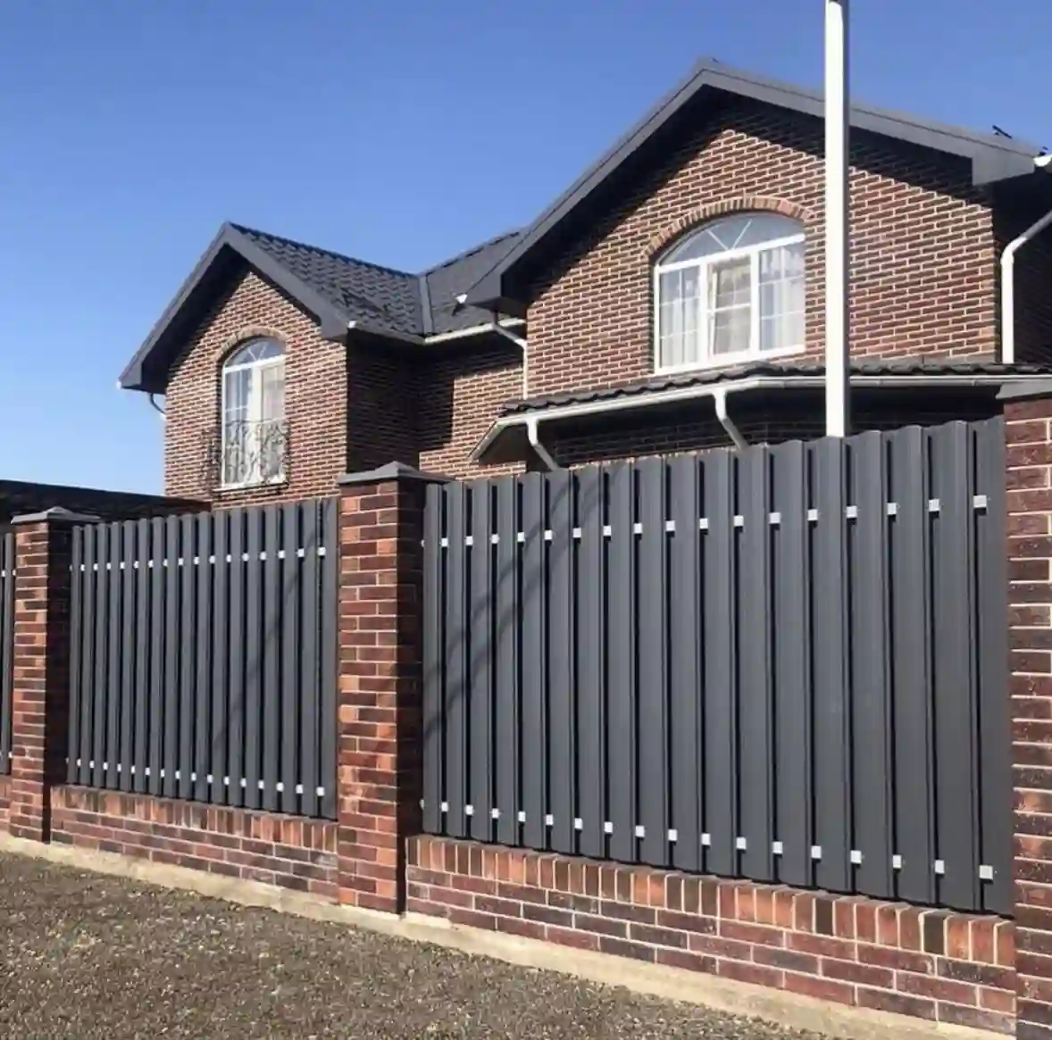 Эстетичный металлический штакетник для загородного дома. Пропускает свет и воздух, не затеняет участок.